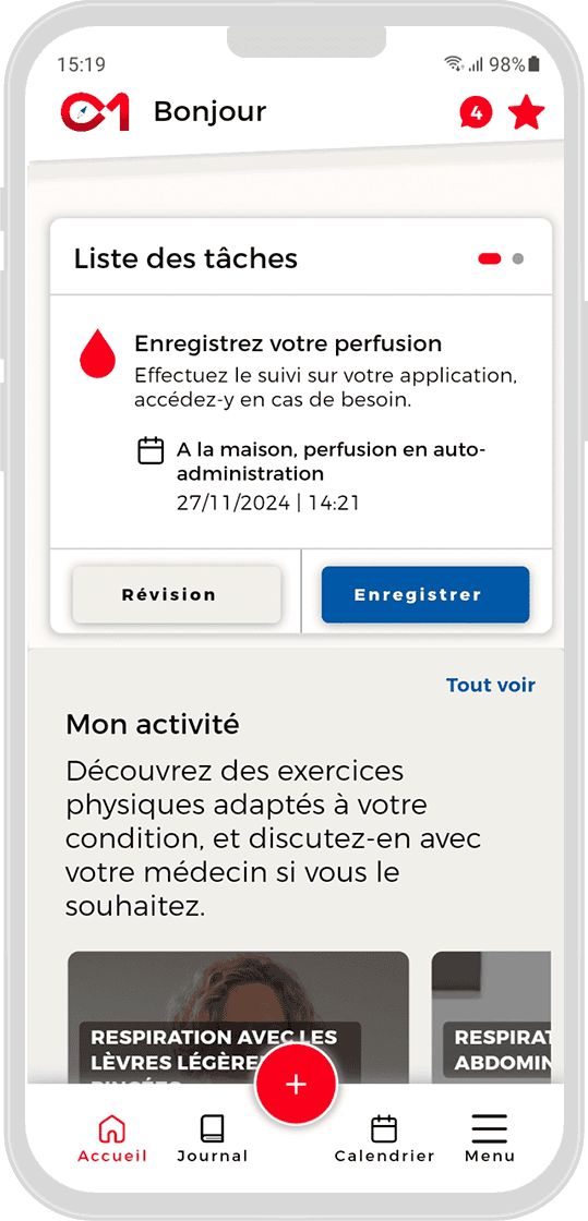 MYALPHA1 COMPASS est l'allié des patients atteints de DAAT pour les aider à mieux vivre au quotidien. Cette application propose des vidéos d’exercices physiques adaptés, un soutien pour planifier ses voyages, préparer ses consultations médicales, un suivi intuitif des symptômes, des rappels de rendez-vous et bien plus encore.